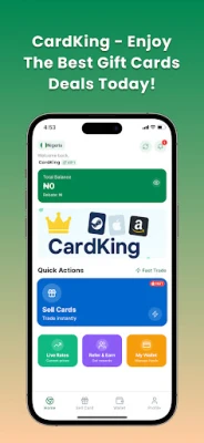 Shin kana Najeriya ko Ghana kuma kana da katin kyauta da kake son canza shi zuwa kuɗi? CardKing shine mafitar ka! Wannan manhaja ta musamman an tsara ta ne don samar maka da wata hanya mai sauƙi da aminci don musanyar katin kyautar ka. Ko kana da Amazon, iTunes, ko wasu sanannun katunan kyauta, CardKing ya sa ya zama mai yiwuwa ka mayar da su kuɗi na gaske ba tare da wata wahala ba. Manufarmu ita ce sauƙaƙa maka don samun cikakkiyar darajar katunanka cikin kwanciyar hankali.