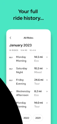 Shin kai mai hawan E-Bike ne da ke neman ingantacciyar hanya don lura da tafiye-tafiyenka da kuma fahimtar su dalla-dalla? CIKADA App shine abokin tafiyarka na dijital, wanda aka tsara musamman don masu amfani da E-Bike don tattara da tsara dukkan bayanan hawanka. Daga nisan da ka hau, zuwa lokacin da ka ɗauka, har ma da hanyoyin da ka bi, CIKADA App yana adana kowane cikakken bayani, yana mai ba ka damar yin nazari mai zurfi kan ci gaban tafiyarka, gano salon hawanka, da kuma inganta ƙwarewar E-Bike ɗinka baki ɗaya. Wannan yana taimaka maka ka ga ci gaban ka a lokaci.