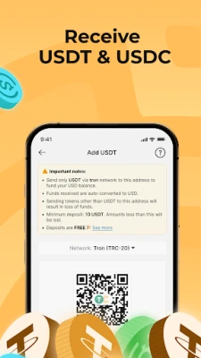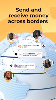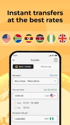 Aika kuɗi zuwa iyalanka da abokanka a Najeriya, Ghana, Uganda, da sauran ƙasashen Afirka kai tsaye. Kawai ƙara banki mai karɓa ko asusun kuɗin waya, tabbatar da bayanai, sannan ka fara tura kuɗin, kuma za su isa nan take. Bugu da ƙari, masu zaman kansu, ma'aikata masu aiki daga gida, masu ƙirƙirar abun ciki, da ƴan kasuwa za su iya karɓar biyan kuɗi na USD daga ma'aikata da abokan ciniki cikin sauƙi ta hanyar ACH da Wires. Haka kuma, Cleva yana ba ka damar karɓar USDT ko USDC cikin walat ɗinka a cikin mintuna kaɗan, yana buɗe sabbin hanyoyin sarrafa kuɗinka. Idan kana son aika kuɗi ga abokanka masu amfani da Cleva, zaka iya yi kyauta! Kuma zaka iya canza kuɗi a mafi kyawun farashi ba tare da wani caji ba.