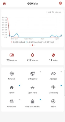 Baya ga tsaro, Firewalla app tana ba ku cikakken iko. Kuna iya saita dokoki na musamman don sarrafa samun damar shiga intanet, samar da tsaro mai inganci ga dukkan na'urori. Ga iyalai, akwai fasalin kula da yara da tace abubuwan da suka dace da iyali, yana tabbatar da aminci ga kanana. Har ila yau, manhajar tana da gina-gina sabar VPN da kuma abokin ciniki na VPN, yana ba ku damar samun damar hanyar sadarwarku ta Firewalla daga ko'ina ko kuma haɗa duk na'urori zuwa sabis na VPN. Tare da ikon toshe tallace-tallace da ingantattun fasalulluka na DNS ciki har da DDNS, DNS over HTTPS, da DNS Booster, kuna da cikakken kayan aikin gudanarwa a hannunku.