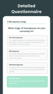 Zaɓin "Menopause Tracker App" yana ba ku damar samun kayan aiki cikakke da ke keɓancewa da bukatun ku na daban. Daga alamomin jiki zuwa canjin yanayin zuciya da zagayen al'adar ku, manhajar tana taimaka muku gano alamu da yin zaɓin lafiya mai tushe. Duk bayanan da take bayarwa suna da tushe daga ingantattun binciken kimiyya, wanda ke ba ku tabbaci wajen yanke shawara game da lafiyarku. A matsayin littafin sirri na lafiyar ku, "Menopause Tracker App" shine wurin ku na kashin kai don bibiyar yanayin tunani, rubuta tunani na yau da kullun, da kuma lura da canje-canjen jiki, yana ba ku cikakken iko a kan tafiyar lafiyar ku. Ku karɓi ragamar tafiyar ku ta tsufa da karfin hali, tare da goyon bayan kimiyya da kuma shawarwari na musamman.