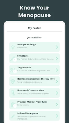 Ku fara tafiyar ku ta hanyar amsa tambayoyi na musamman da za su ba "Menopause Tracker App" damar daidaita kanta da yanayin ku na daban. Wannan zai ba ku damar bibiyar matakin tsufarku, alamomin da kuka fi fuskanta, kariyar abinci, tarihin magungunan hormones, da duk wata hanya ta likita da kuka bi, don samun cikakkun shawarwari. Haka kuma, za ku iya rubuta alamomin ku cikin sauki, zagayen al'adar ku, canjin yanayin zuciya, kariyar abinci, rubuce-rubuce na sirri, da motsa jiki. Wannan tsarin cikakke yana taimaka muku gano alamu a kan lokaci don inganta fahimtar ku game da lafiyarku da kuma sarrafa ta yadda ya kamata. Bugu da kari, za ku sami rahoto na mako-mako da aka keɓance muku don gano alamu, inganta jin daɗinku, da kuma karɓar ragamar lafiyar ku.