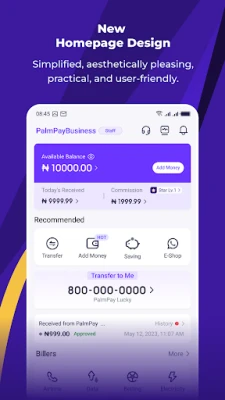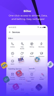 PalmPay ya wuce kawai zama manhajar biyan kuɗi; shi abokin kasuwancin ku ne na gaskiya. An ƙirƙiri manhajar don biyan buƙatun kasuwancin zamani, tana ba da ingantattun hanyoyin magance matsaloli masu sauri da aminci don duk harkokin ku na kan layi ko a kantuna. Tare da haɗin gwiwa sama da 500, PalmPay yana tallafawa kowane nau'in biyan kuɗi, daga canja wuri zuwa biyan kuɗin hidima. Mu'amalarta mai santsi tana ba ku damar sarrafa duk harkokin ku na kuɗi cikin sauƙi, yayin da kuma ke ba ku damar bibiyar ma'amaloli a ainihin lokacin don kiyaye gudunmawar kuɗi mara yankewa. Rajista abu ne mai sauƙi da lambar wayar ku kawai, kuma sabbin masu amfani suna jin daɗin kuponi na musamman, canja wuri kyauta, da damar samun rangwame ko cashback a kowane siye.